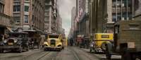 2019 update........twenty five fully restored and pristine vintage cars were provided and driven during filming by their owners,the props team needed vehicles which could be converted into taxis,delivery vans,military and police vehicles,plus stunt vehicles which could be crashed or crushed, so they sourced scrap yard/barn find uncomplete vehicles with bits missing and were made good as driveable movie props.because the vehicles were New Zealand based, they were all right hand drive so a special vehicles unit was established to get the junkers into working order and convert them to left hand drive.any that were mechanically dead were given a face lift and positioned on set as parked cars.exterior features such as police lights and taxi lights were made by the props makers as were all the period prop license plates ,70 pairs of license plates were made in collusion with a book author who had just completed a book on collecting thirties vehicle license plates.random letters and numbers were chosen to represent various license plates but they had to be sent to Universal to go through a legal process in order to ensure the prop license plates did not match a current load legal vehicle...the taxi that Kong chases was fitted with a modern souped up engine for speed and handbrake turns...but it caused problems post production as the effects team could not match the speed of the souped up car with the sound of a ford model a period engine. |
