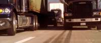 The Land Rover was in the race, and was speeding its way through traffic on the freeway. The trucks were just traffic vehicles blocking the way. IRRC, there were no 18-wheeler related action scenes in the show. |