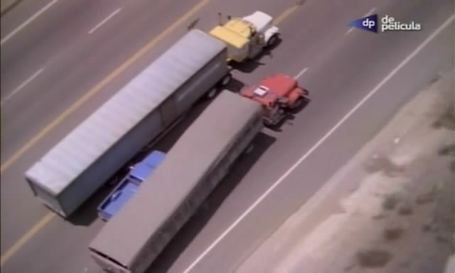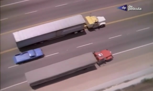 I think its ford c 150 pick-up (note the ford 4 icons above the engine grill):![]() Horrible truck chase with the ford pick-up: ![]() The pick-up gets sandwiched between the two trucks: -- Last edit: 2014-03-22 20:26:35 (karoomay) |