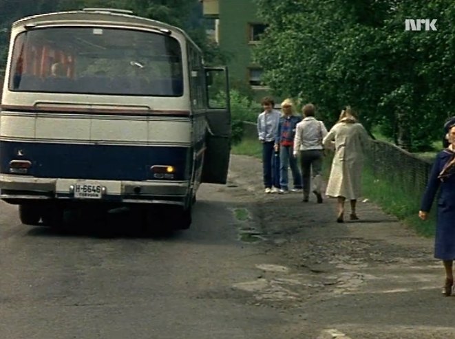 I believe this is an early (1965-68) Mercedes O 302. That is one with a non standard body (without the rounded top), but plenty of features that point that way. Like the exhaust pipe through the rear bumper, the shape of the engine hood/bonnet and the shape of the rear window including the roof line towards the rear window. |